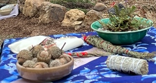 Yellow corn meal, white sage, coffee bean, altar flowers adorn her spiritual grave filled with the treasures of her many descendants. We breathed our blessings into her spiritual grave. For her. For ourselves. For a world in need of such power, wisdom and brightness of spirit.